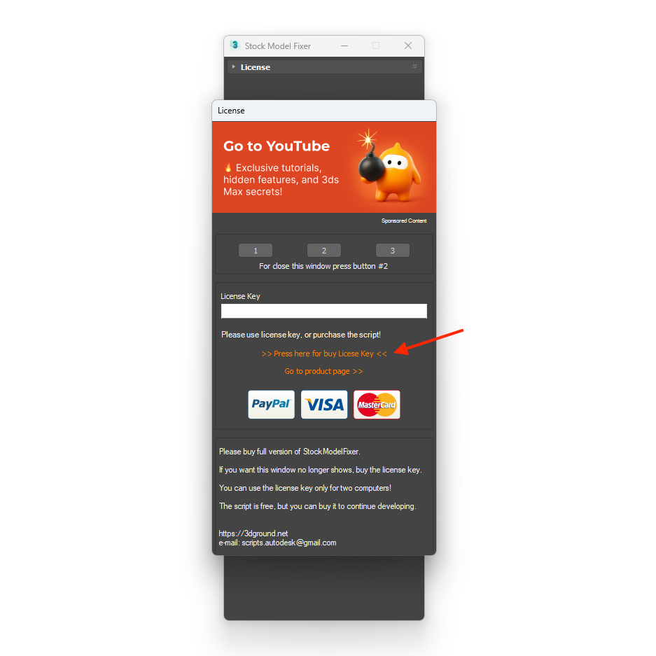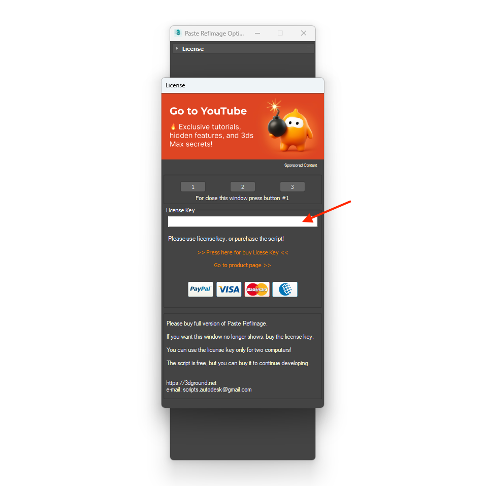 Paste RefImage PageOr click on the link >> Press here for buy License Key <<, in the script license window.